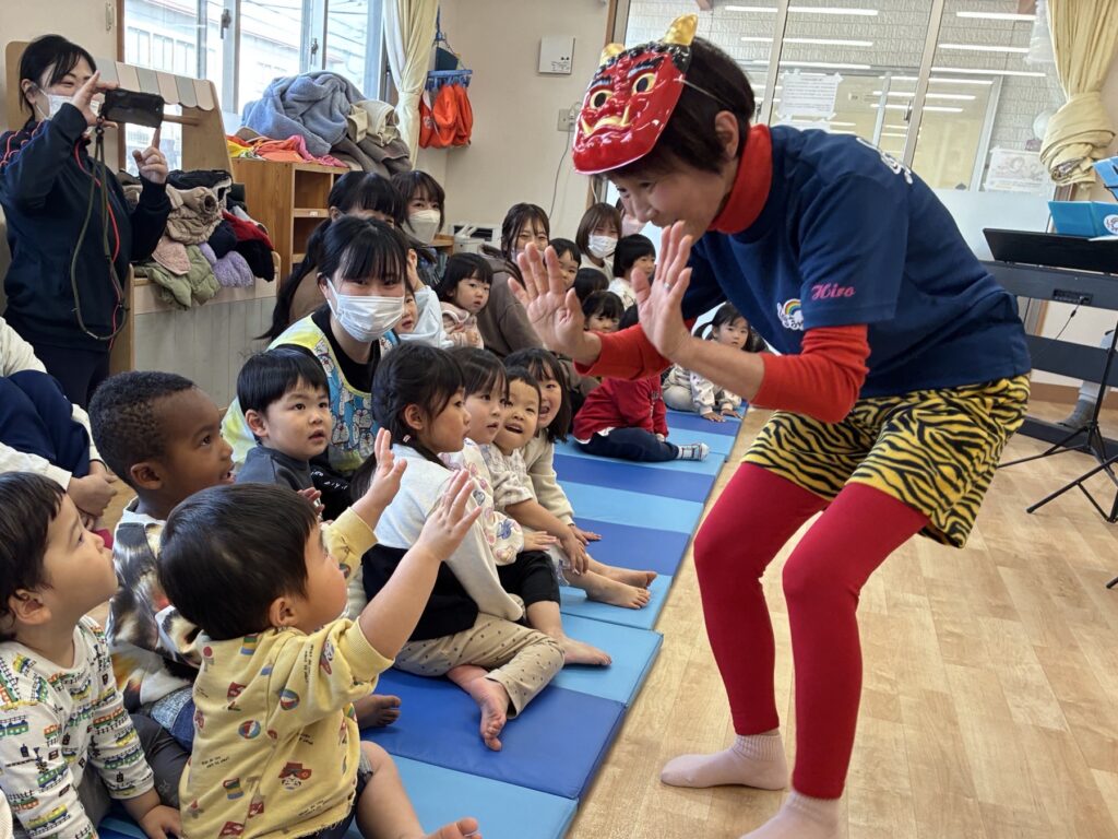 節分が近いこともあり、サプライズで鬼さん登場!小さいおともだちも、ハイタッチ!