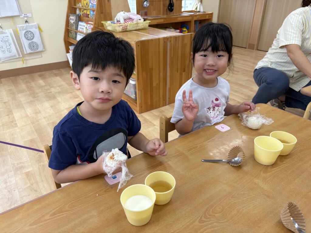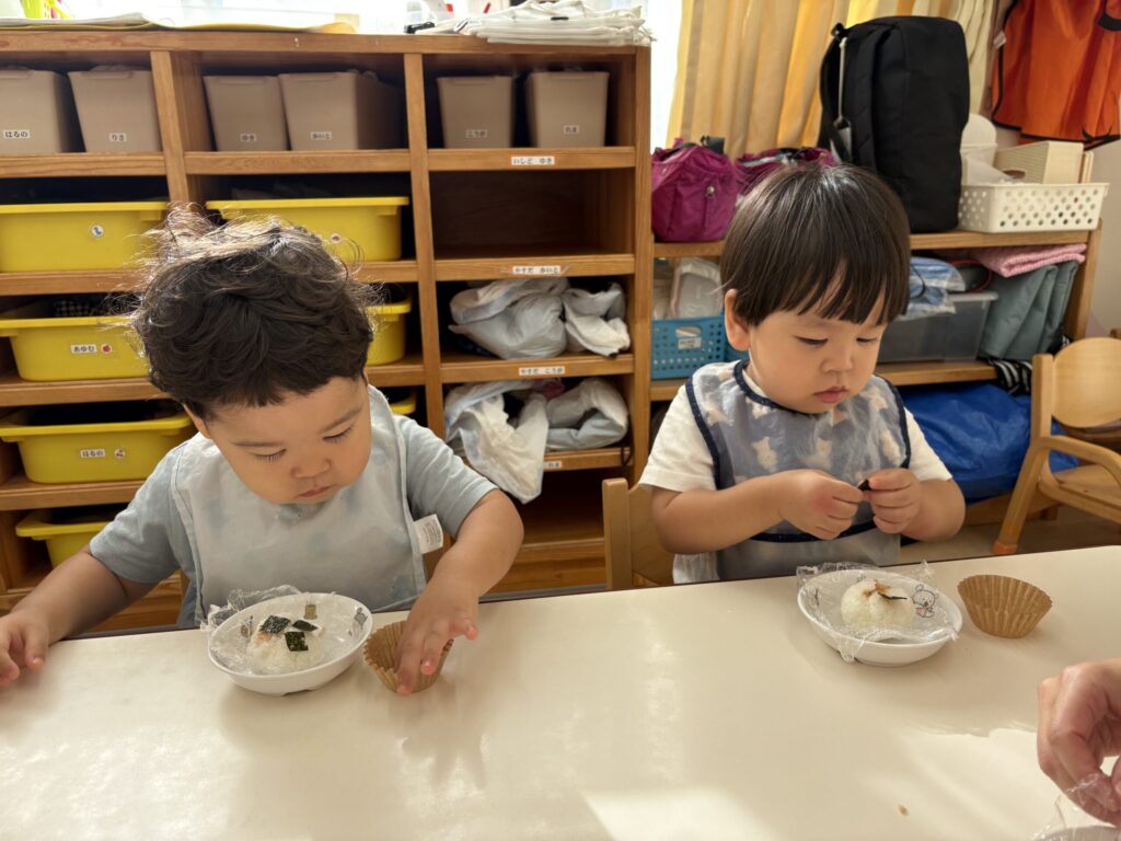 おにぎりが完成すると「みてみて!」と嬉しそうに見せてくれました。