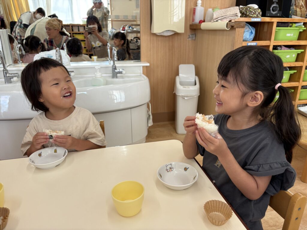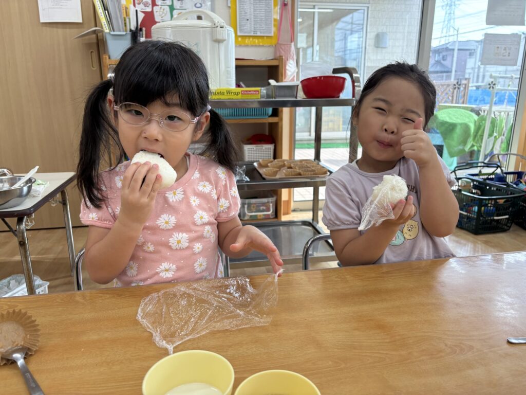 自分で作るおにぎりはとても美味しかったようで、「いつもよりおいしい♪」という声も!