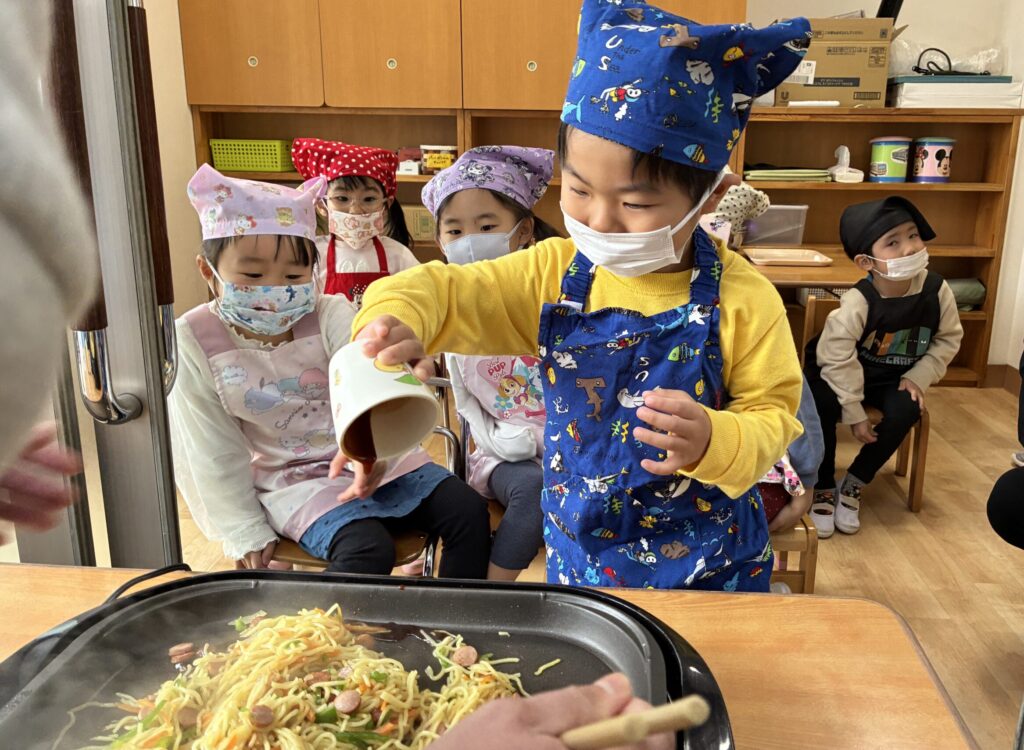 それぞれ担当の食材を決め、協力して焼きそばを完成させました。