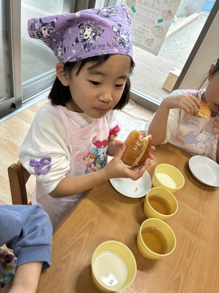 完成したクッキーを食べながら、「またつくりたい!」「つぎはホットケーキがいい!」と次回のクッキングのお話をしていました。