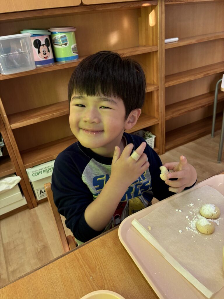 年少さんのクッキングでは、スノーボールクッキー作りを行いました。